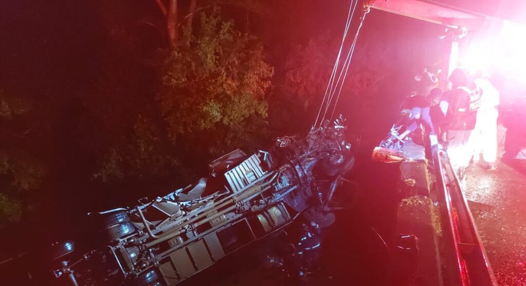 “One patient, of the 69 passengers confirmed transported to hospital for various injuries, has since died. Three people were found deceased by the roadside and 16 down by the river – all were declared dead on arrival. Most of the fatalities down by the river had been trapped under the bus,” he said.