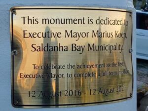 By: Staff Reporter A Democratic Alliance member and Saldanha Bay Municipality mayor Marius Koen has rewarded himself with a monument to celebrate finishing his term.