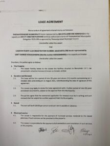 ANC Chief Whip in the Theewaterskloof Municipality councillor Raymond Nongxasa said in terms of the lease agreement, council land was given by the previous DA-led administration, at a nominal fee of R120 per year for a period of 9 years 11 months to Koeglenberg’s husband.