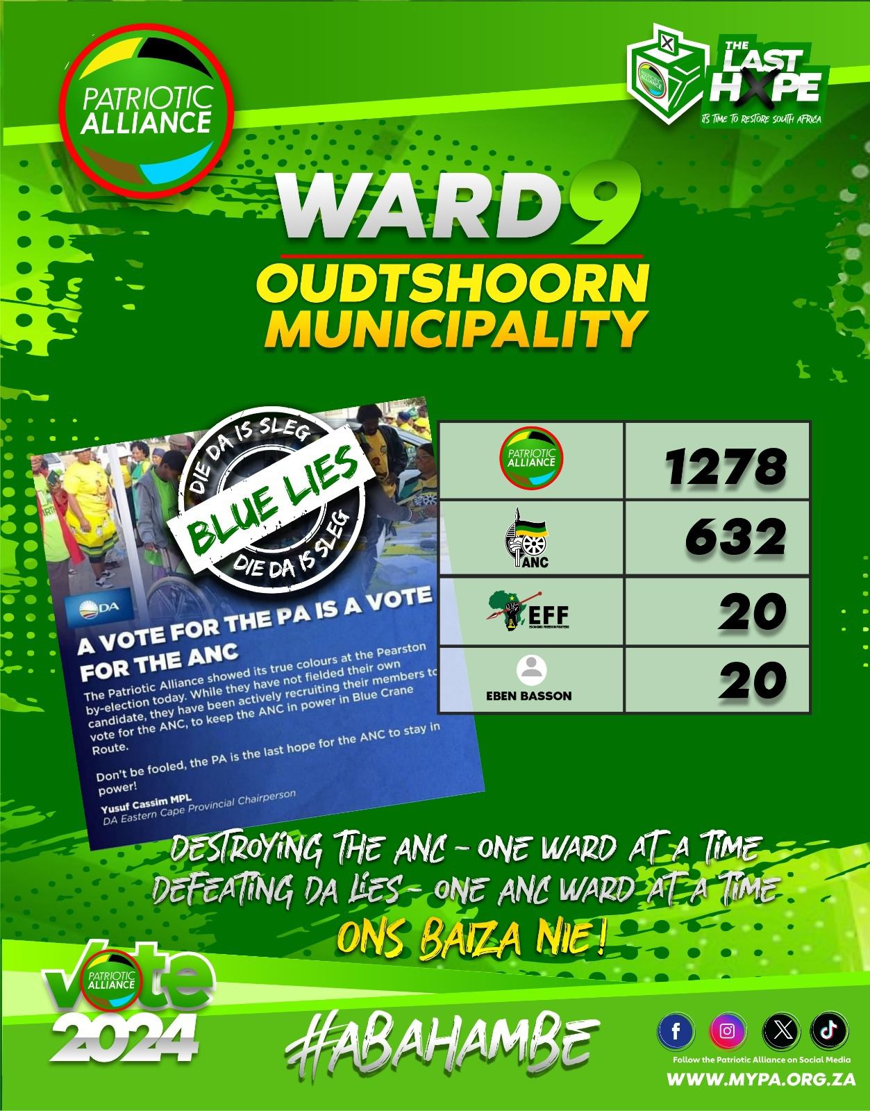 By: ANG Reporter The Patriotic Alliance (PA) continues to make significant inroads in the Western Cape, traditionally the stronghold of its arch rivals, the Democratic