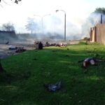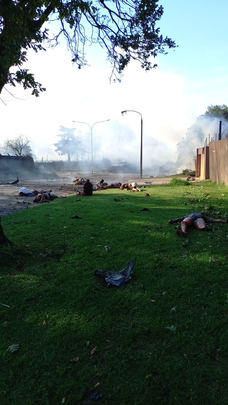 The hospital and nearby buildings are on fire and patients were seen scrambling to safety.