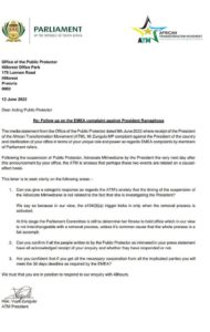 Africa News Global has seen a letter of Mkhwebane addressed to Ramaphosa in which she notified him that she had been asked by Vuyo Zungula, president of the African Transformation Movement (ATM) to probe him (Ramaphosa), for possible violation of the Executive Ethics Code, relating to the 2020 theft of millions of dollars at his Phala Phala farm in Limpopo.