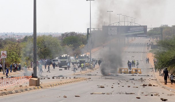 They barricaded the busy Molefe Makinta road with rocks and burning tyres.