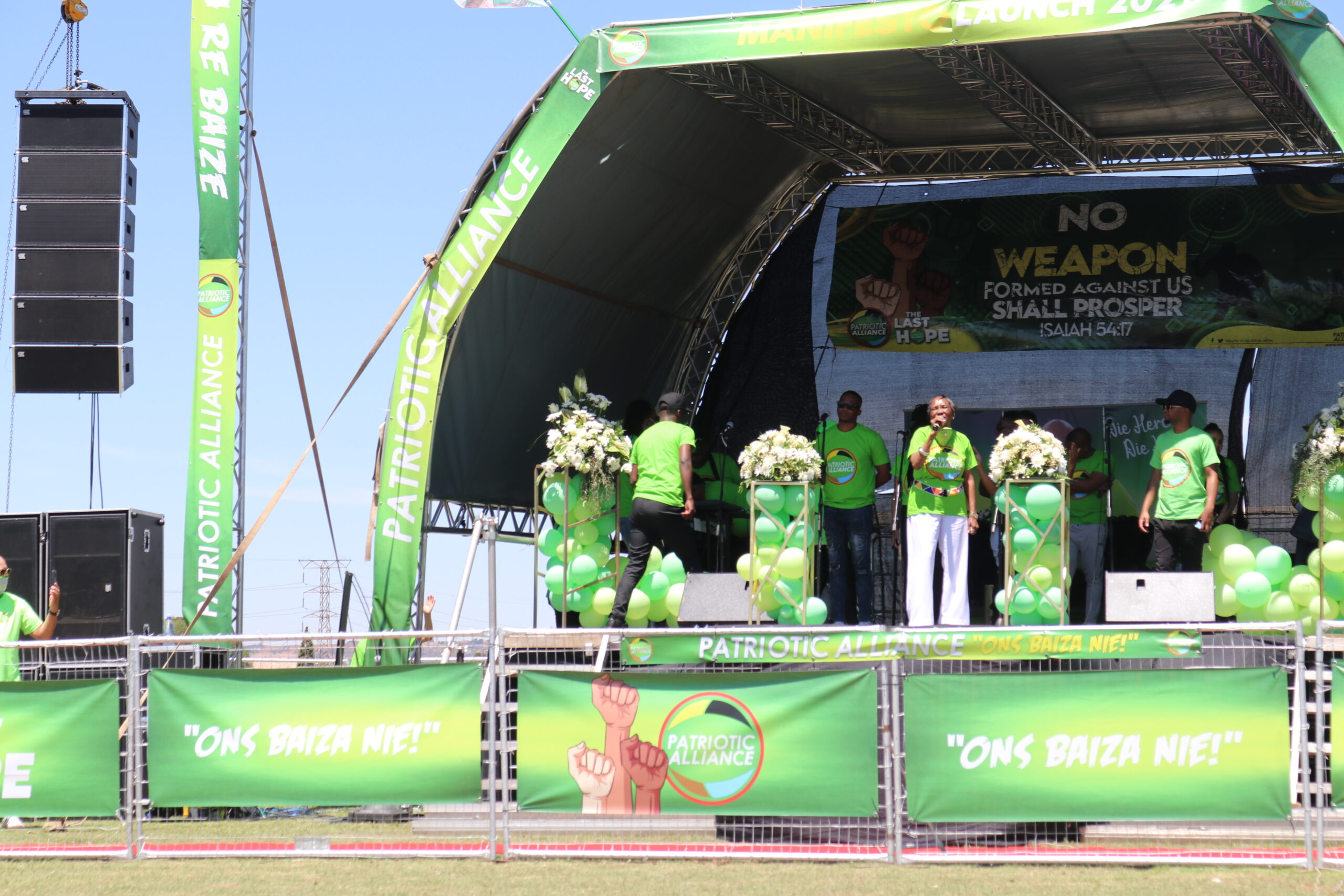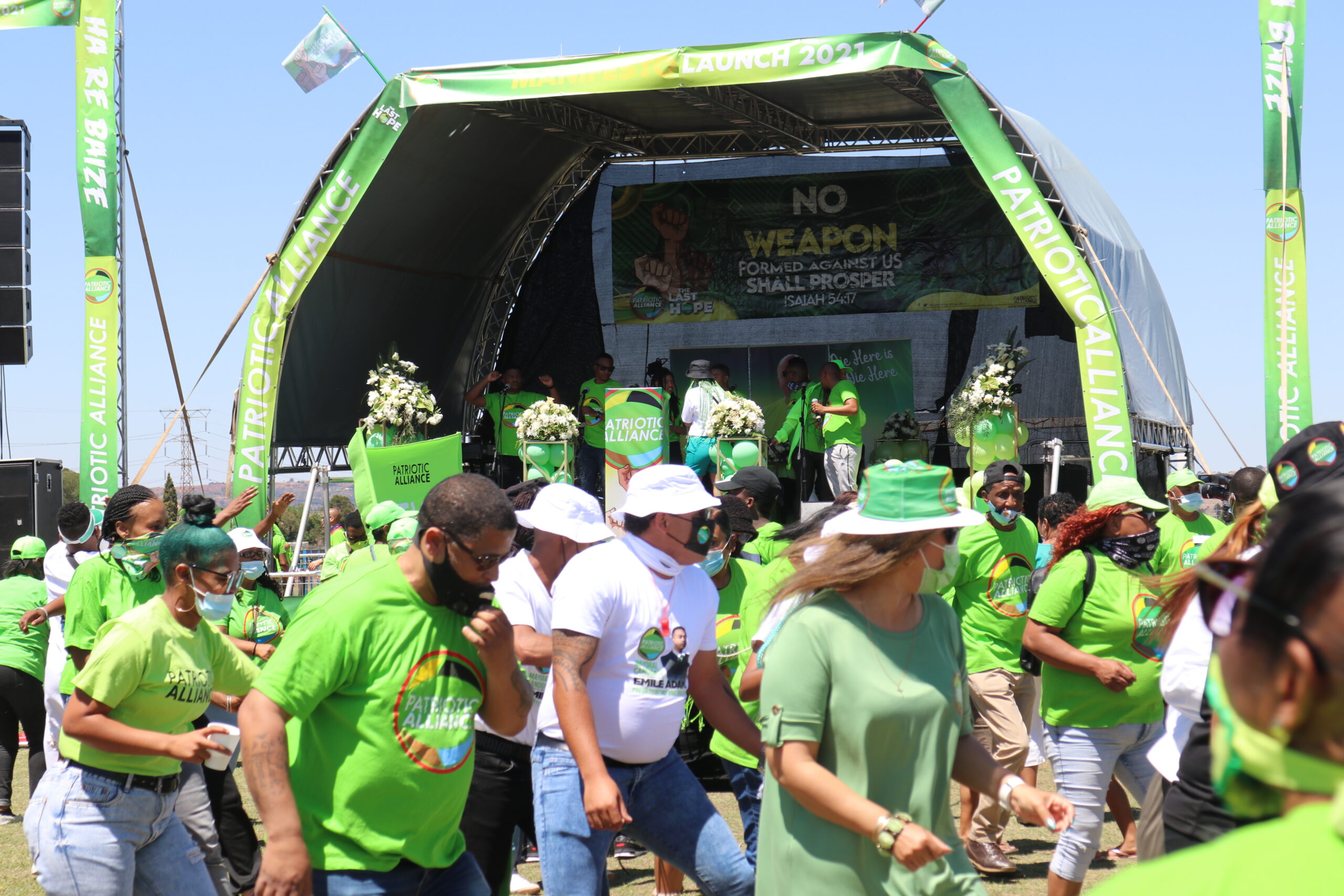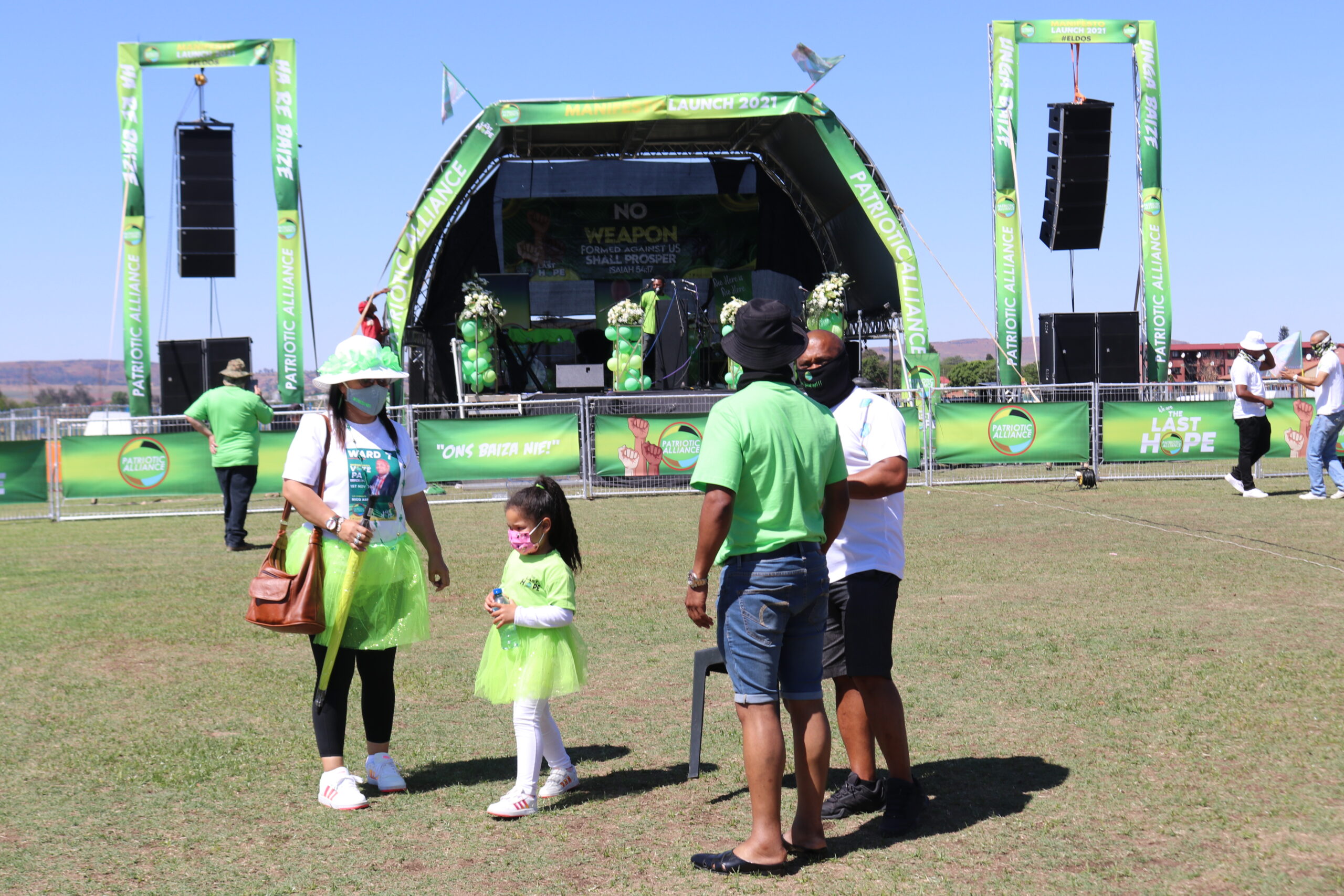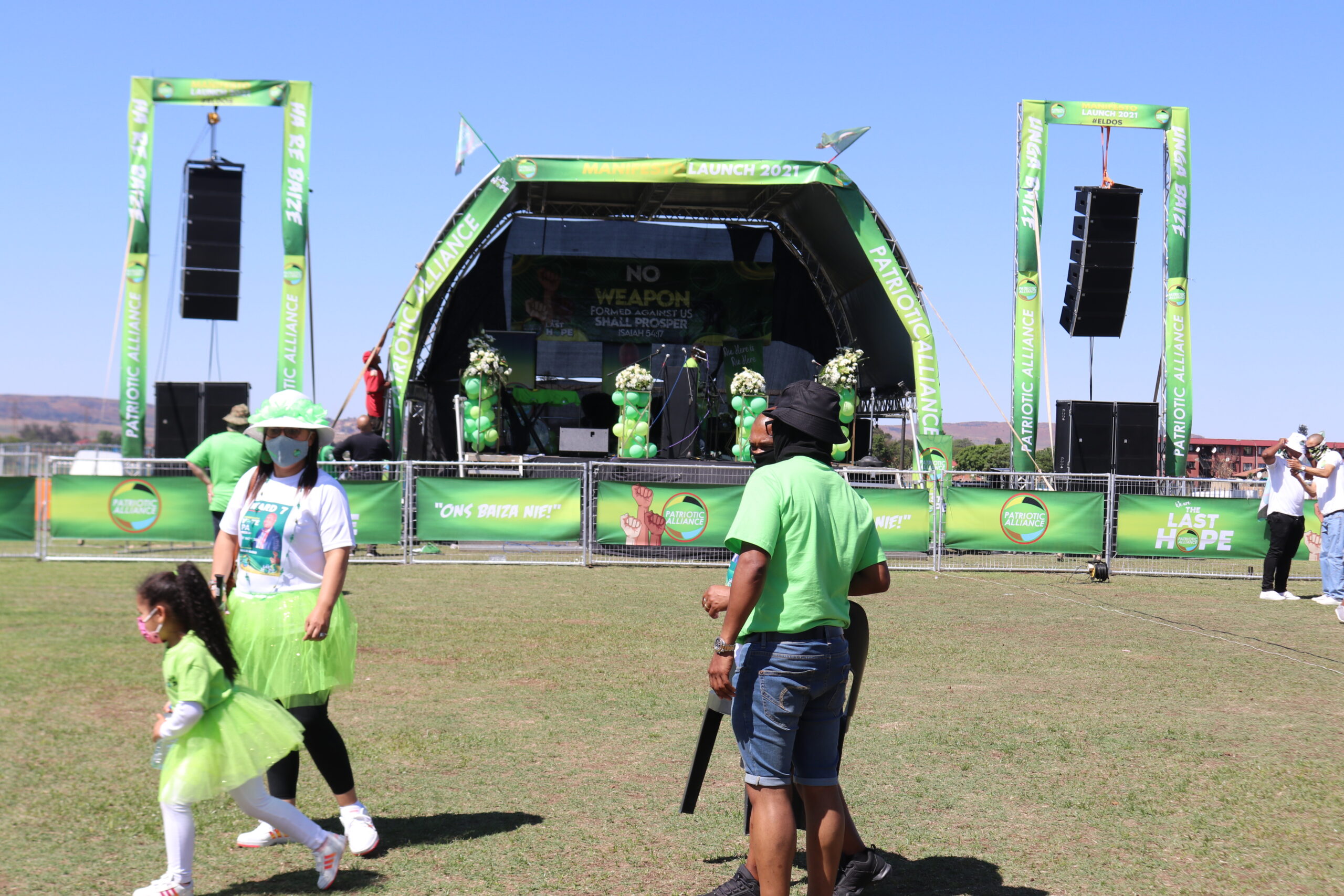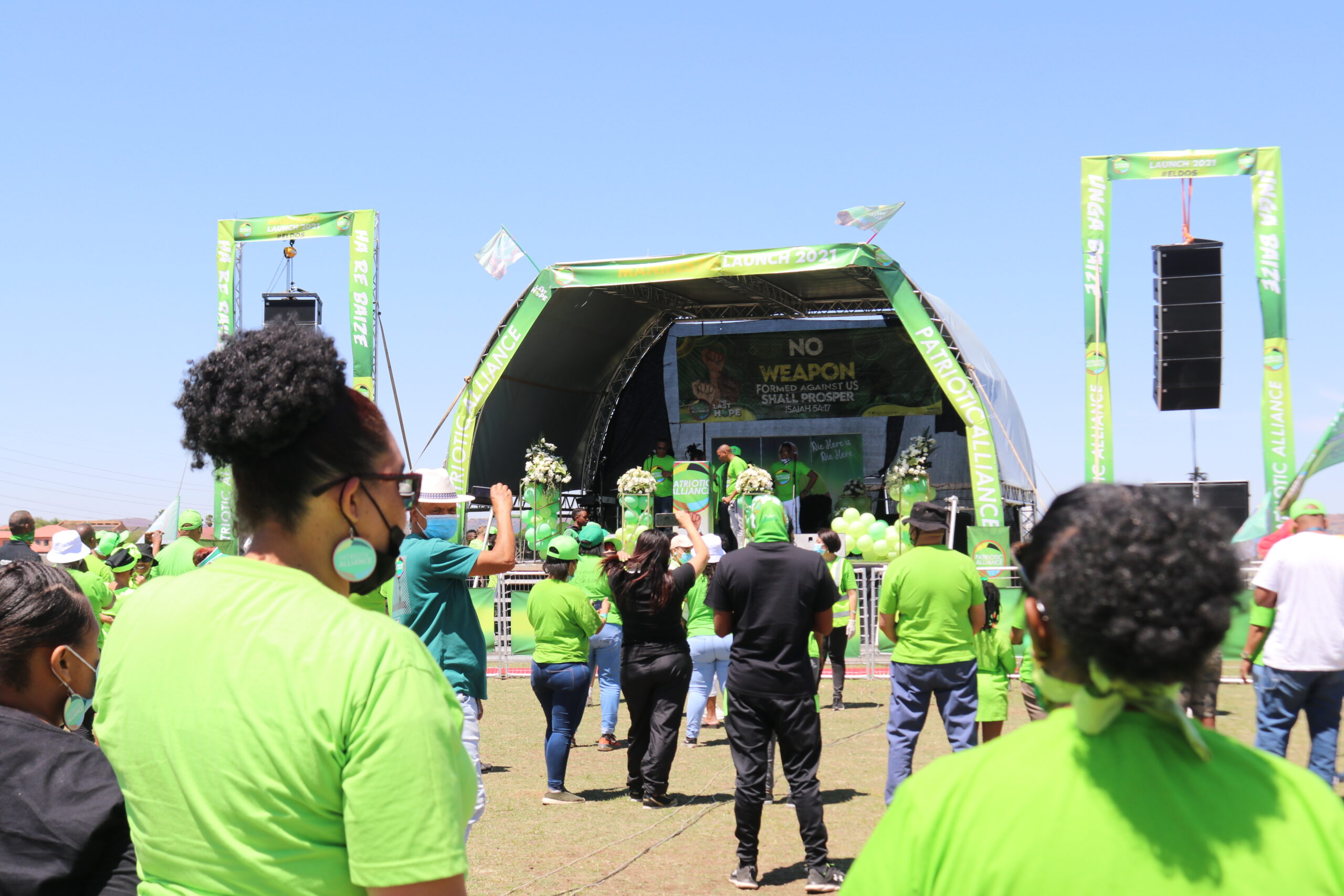 The Patriotic Alliance launched its manifesto in Eldorado Park on Saturday. Hundreds of party supporters dressed in green packed the sports field to hear party President Gayton McKenzie speak
