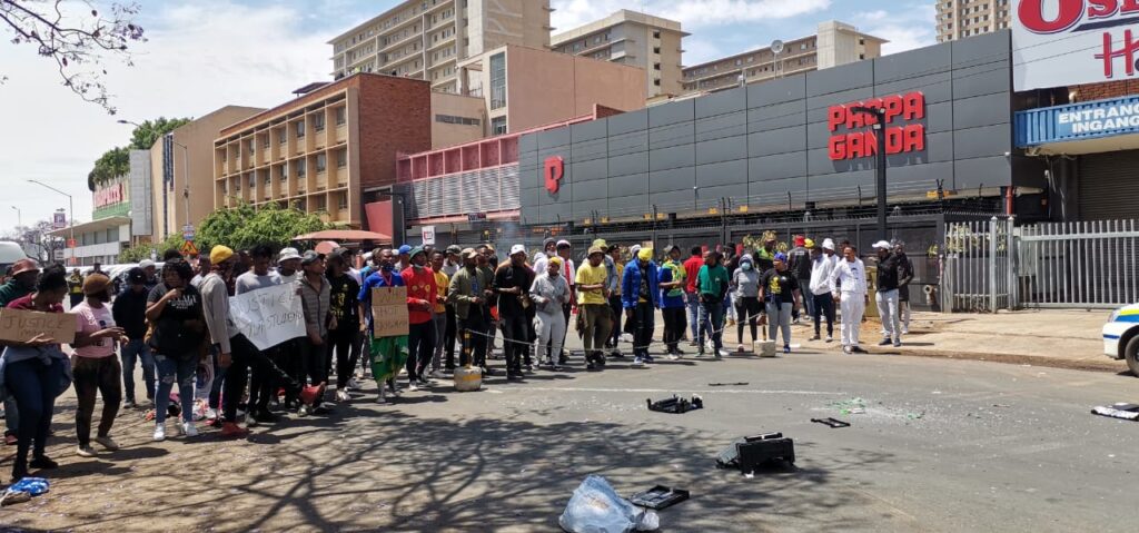 Tshwane University of Technology (TUT) students are protesting outside Propaganda, a club in Pretoria.