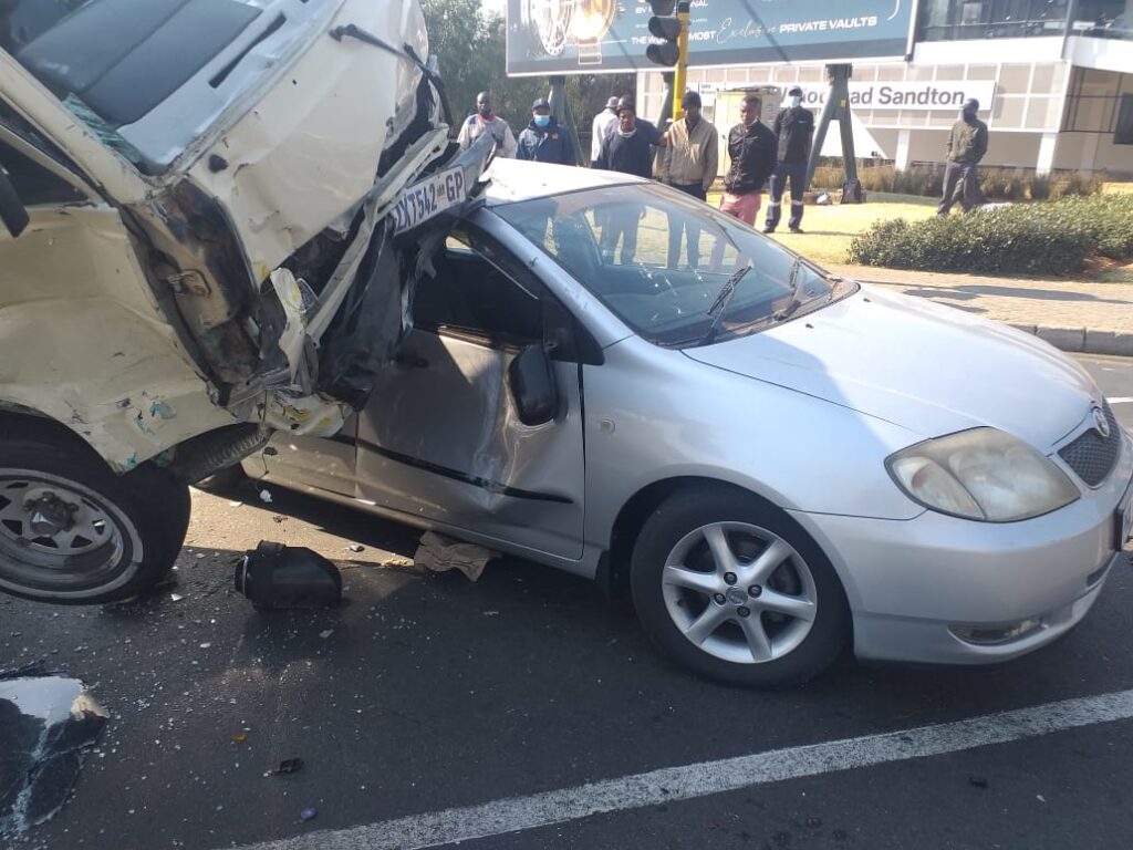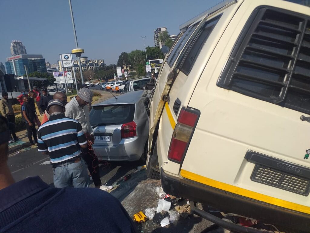 JOHANNESBURG- A few people were left injured on Tuesday morning when a minibus taxi collided with two vehicles at corner Rivonia and South Road, Morningside.